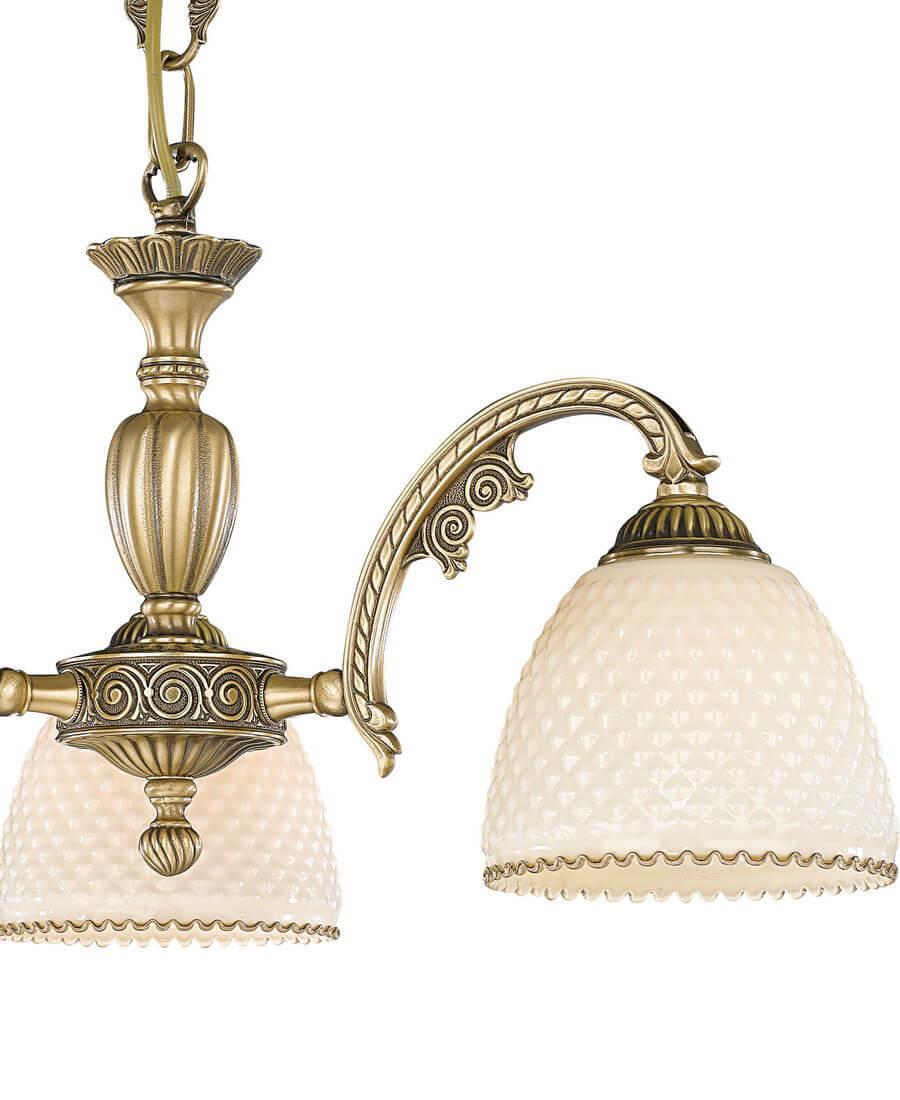 Подвесная люстра Reccagni Angelo L 7005/3 Итальянского производсва – лучшее соотношение цена-качество. Этот светильник Классического стиля хорошо подойдет Для гостиной и придаст помещению мягкий и приятный свет. Плафоны белые из стекла. Арматура бронза из металла. Кол-во ламп - 3шт. Общая мощность 180W