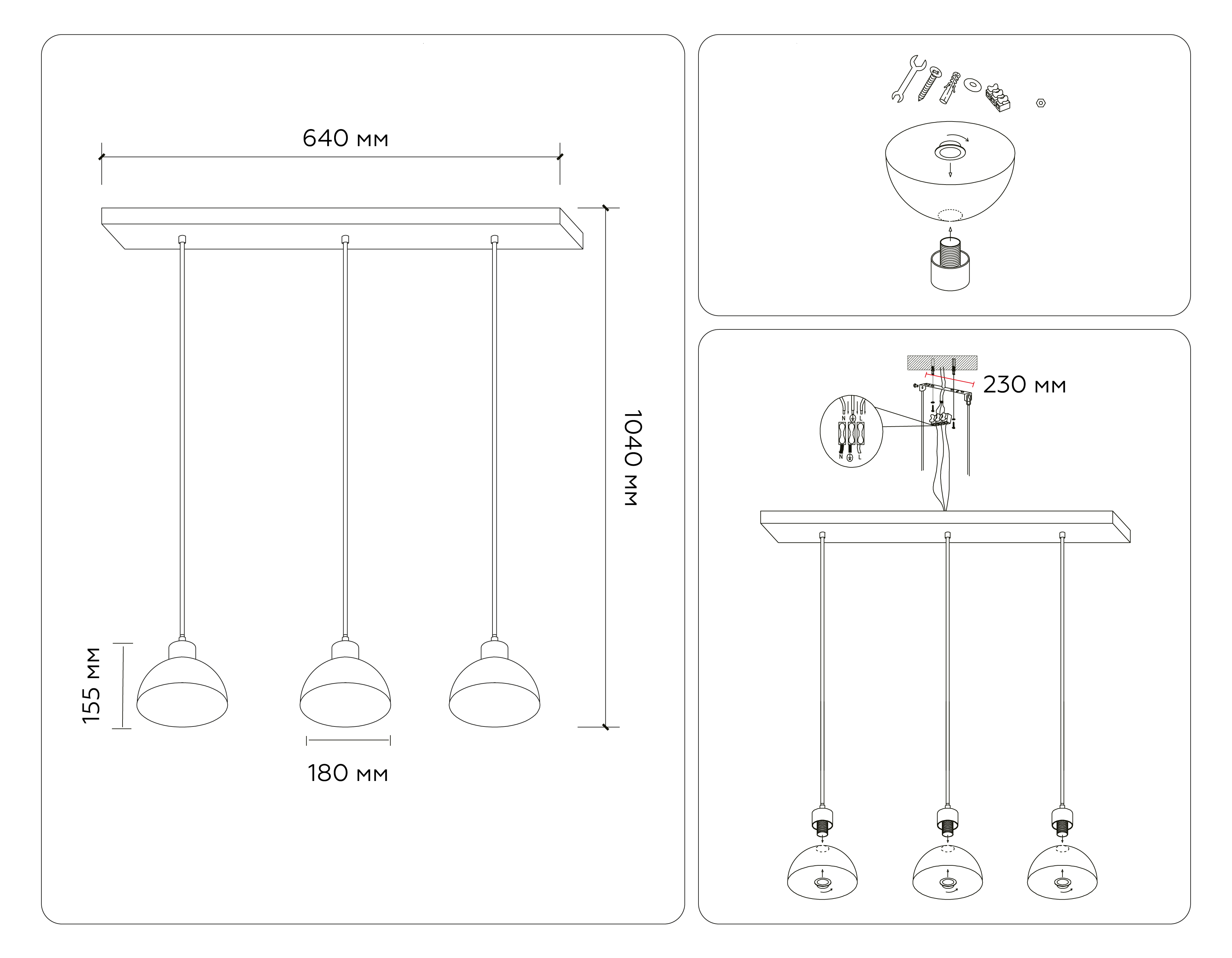 - Количество ламп: 3 шт
