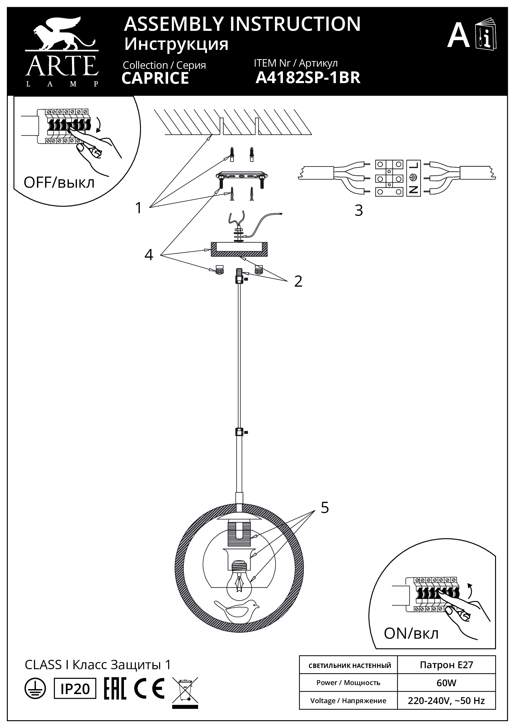 Данную модель A4182SP-1BR с быстрой доставкой спешите купить по цене 6 590 ₽ в магазине 220svet.ru