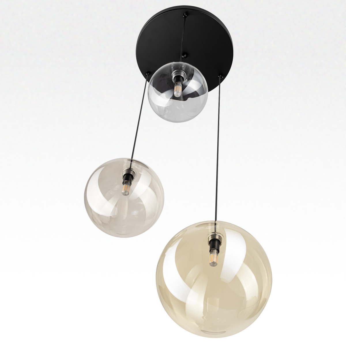 Каскадная люстра Citilux ORTON CL202133 представляет собой гармоничное сочетание строгих линий и воздушной лёгкости. Металлическое основание в форме идеального круга с чёрным матовым покрытием служит надёжной основой для подвесных стеклянных шаров. Прозрачные, с золотистым оттенком шампань и дымчатые плафоны (размером 15, 20 и 25см) превращают люстру в художественный элемент даже при выключенном свете.