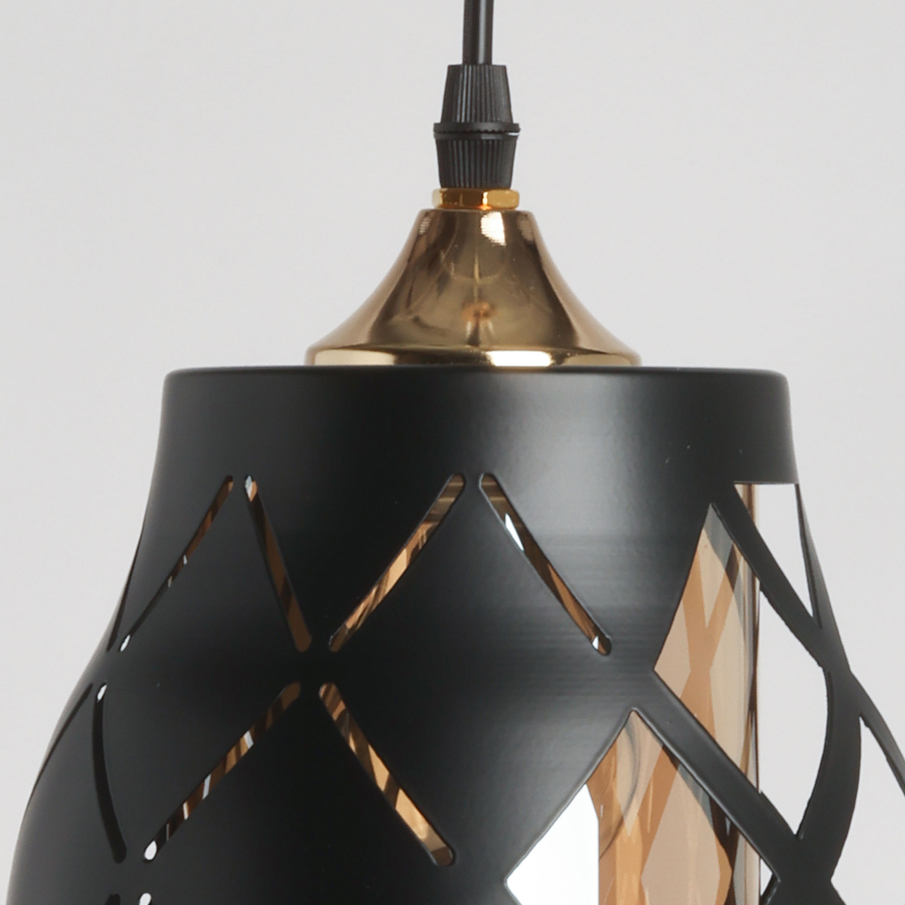 Одиночный подвес создает комфортное зональное освещение. Сочетание на контрасте матового черного цвета и глянцевого цвета золота эффектно выделяет подвес на потолке.Черный цвет металлического плафона актуален в стиле лофт и в брутальном интерьере.Стеклянный плафон цвета шампань мягко преломляет свет.Заменяемый источник света удобен в эксплуатации.Возможность устанавливать комфортную высоту.