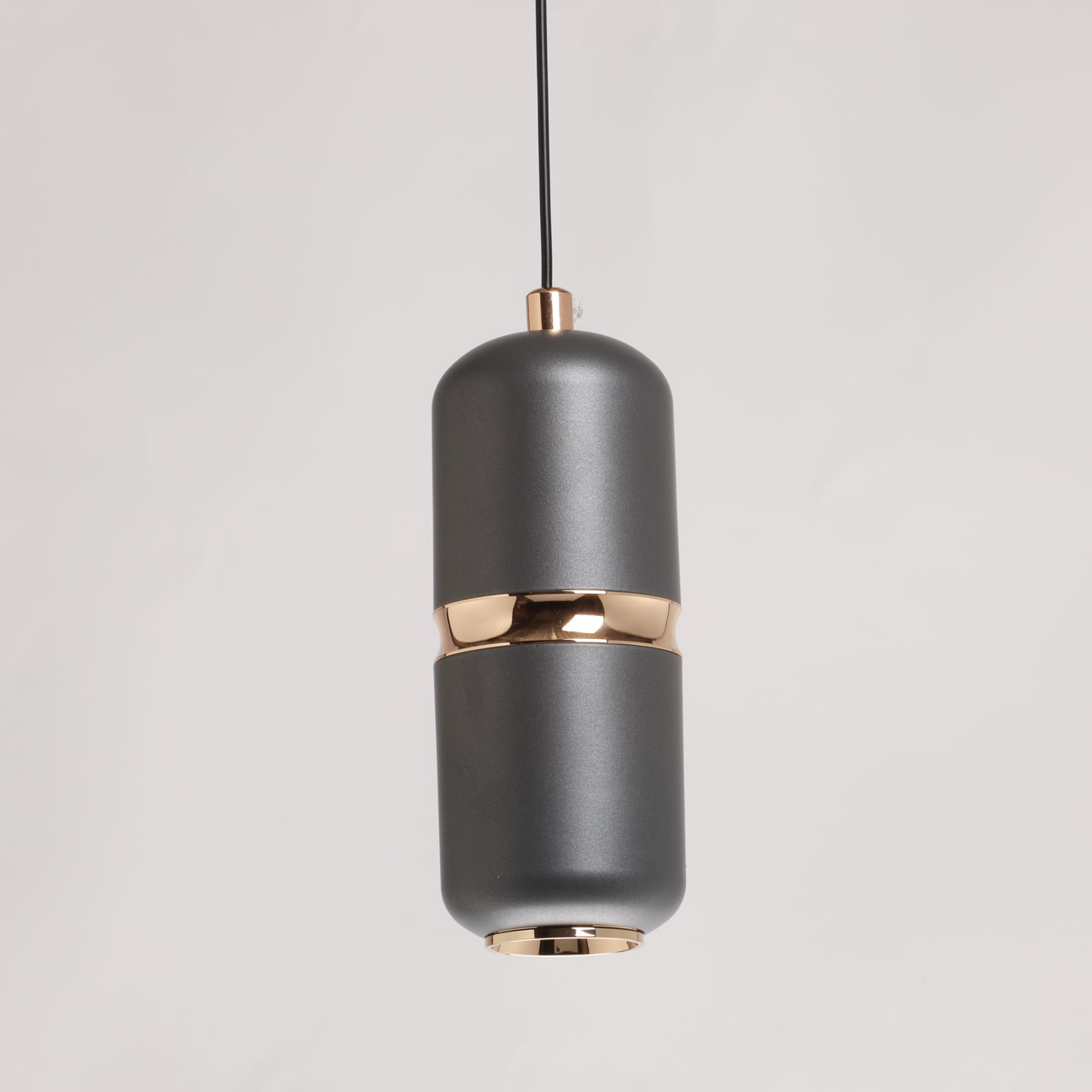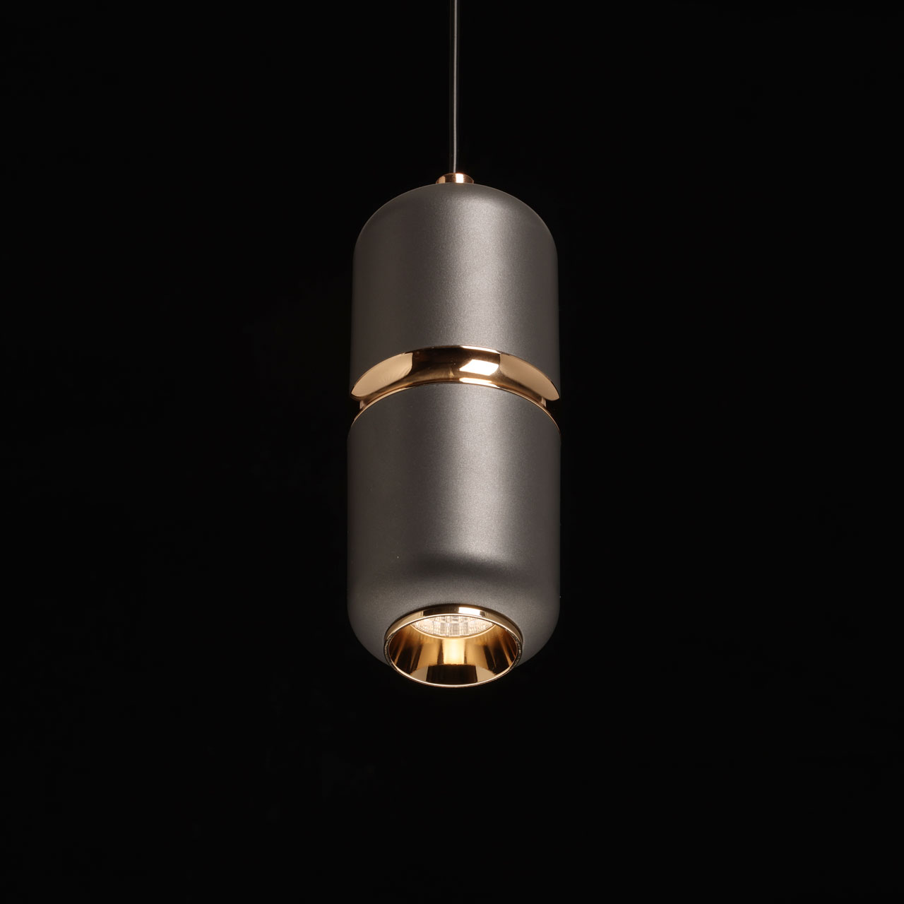 Металлическое основание подвеса окрашено в черный цвет. Корпус плафона выполнен из сплава алюминия и окрашен в серый цвет. Отдельные элементы плафона гальванизированы в цвет золота.