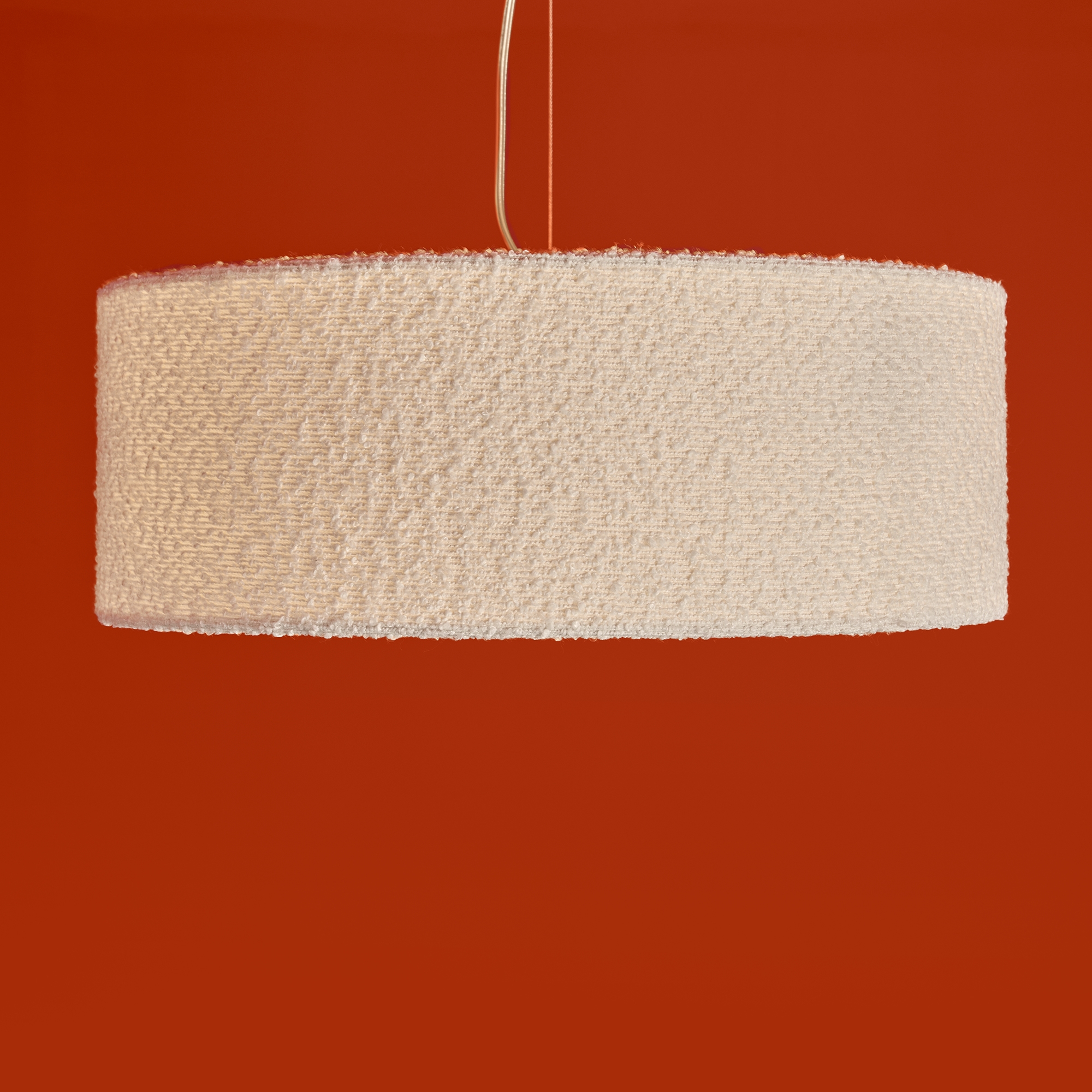Арматурат - металл в цвете латунь. Подвесной светильник с фактурным белым тканевым абажуром. Дополнительный рассеиватель из ткани. Лампы E14 (не включены). Регулировка 250-850 мм.