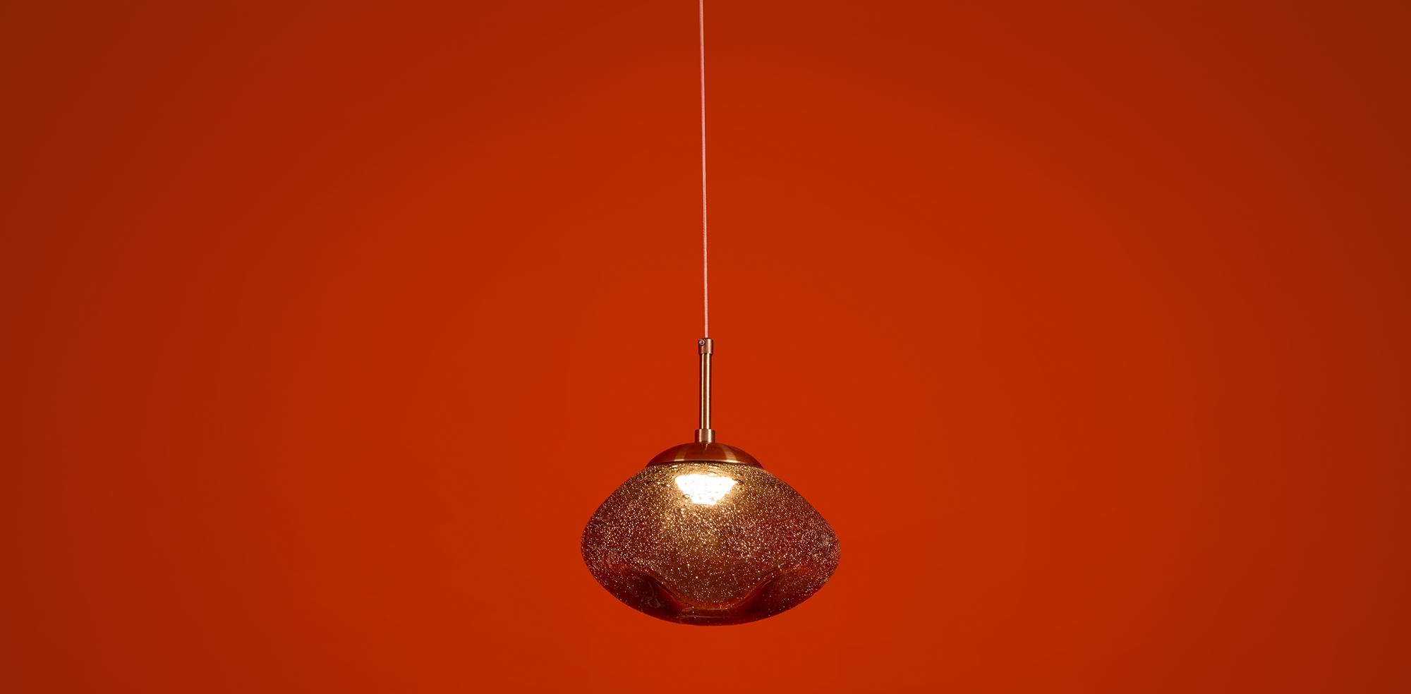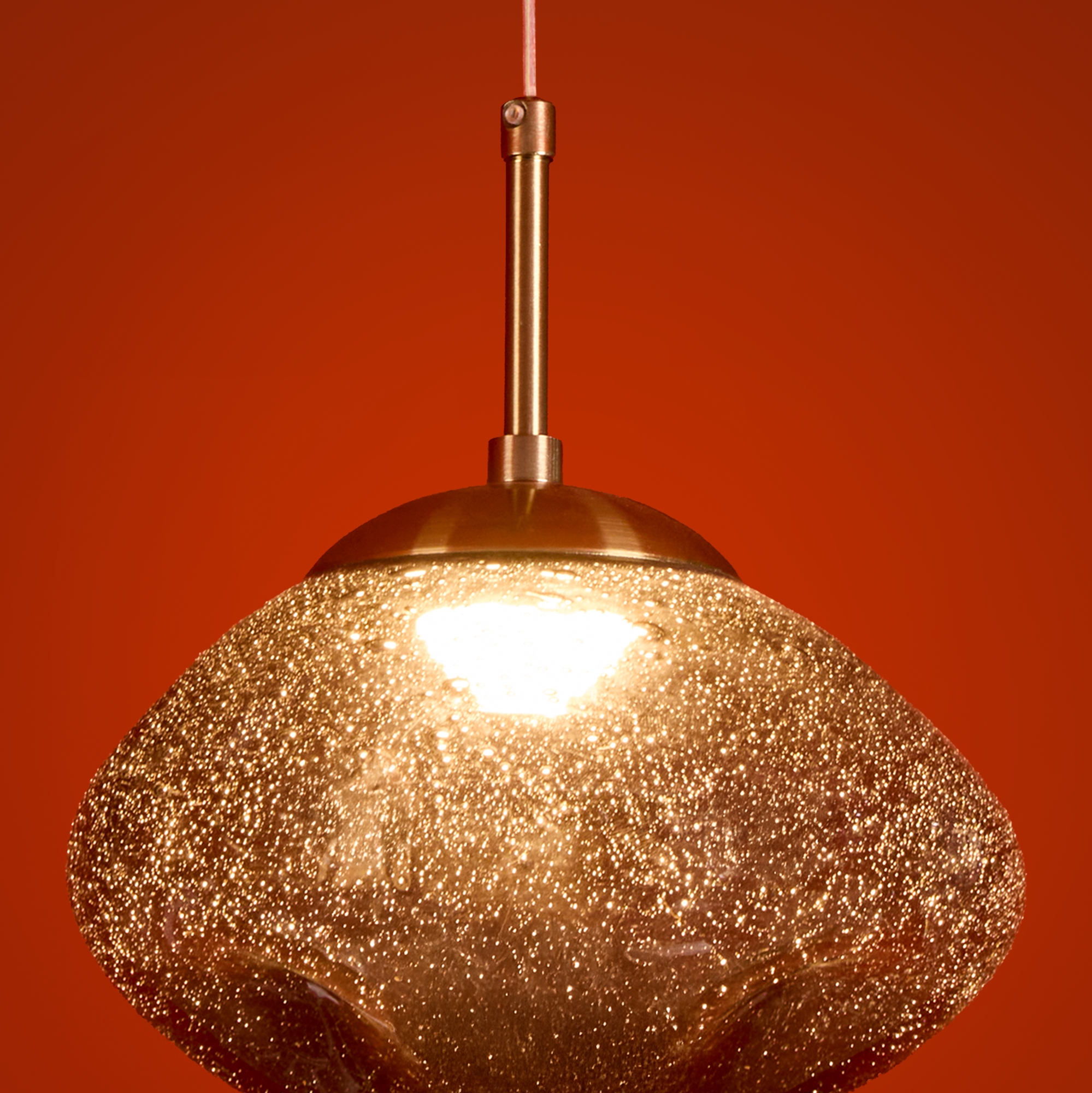 Арматура — металл. Стеклянные плафоны с пузырьками в трёх цветах: дымчатый, прозрачный, янтарный. Интегрированный LED источник света 3000К, Ra 80, угол 180°. Высота регулируется.