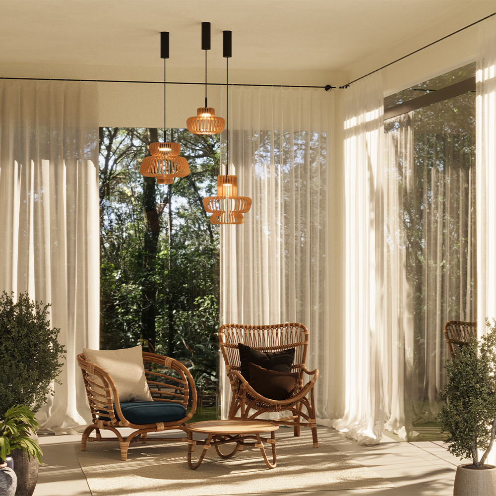 Дизайн сочетает японскую эстетику с современным дизайном. Абажур изготовлен из 5-слойной фанеры с лаковым покрытием, подчеркивающим натуральную текстуру дерева. Металлическая арматура в черном цвете. Светильники предлагаются в трех формах абажуров для одиночного или группового размещения. LED-источник с трехступенчатым переключателем температуры (2700K-3000K-4000K). Позволяют создавать разнообразные световые сценарии. Натуральные материалы и воздушный дизайн создает атмосферу гармонии и умиротворения.