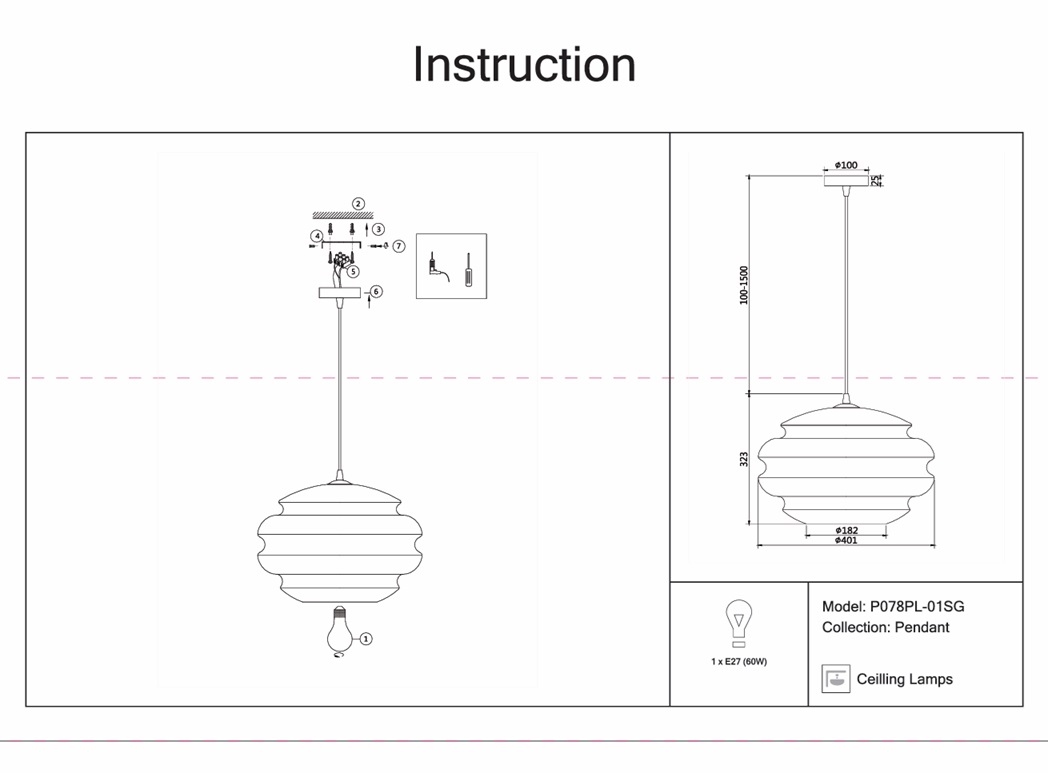 - Диаметр плафона (абажура): 401