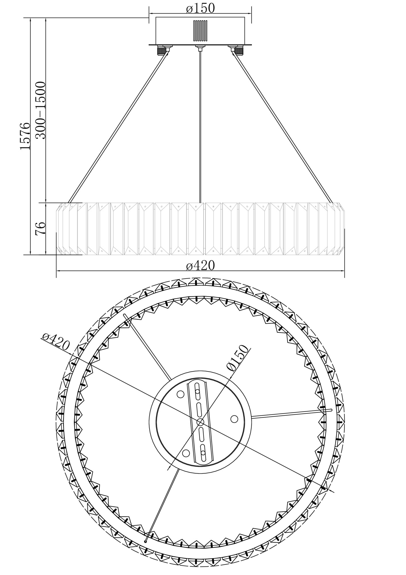 - Диаметр плафона (абажура): 420