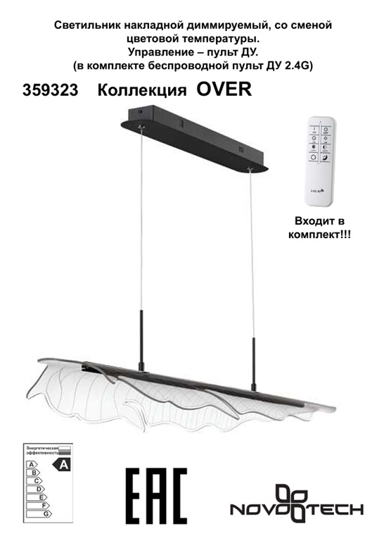 Подвесной светодиодный светильник с пультом ДУ Novotech FOGLIO 359323 — это модель, в которой каждая деталь подчеркивает стиль и функциональность. Конструкция светильника представляет собой подвес длиной 98,5 см с черной металлической арматурой и с плафоном из акрила в виде прозрачного фактурного листа с волнистыми краями, словно только что упавшего с ветки дерева. Тип подвеса - трос. Благодаря источнику света с типом цоколя LED и мощностью 36 Вт, этот осветительный прибор обеспечивает комфортное и равномерное освещение на площади в 17,5 квадратных метров, создавая уютную атмосферу в вашем доме. Размеры устройства составляют 985 мм х 220 мм х 1200 мм, что позволяет легко интегрировать его в любое интерьерное пространство. Технической особенностью является регулировка по высоте, что дает возможность, изменяя длину шнура, создавать эффектные инсталляции, располагая подвесной светильник на нужной вам высоте. Также в комплекте идет пульт дистанционного управления, с помощью которого вы можете регулировать цветовую температуру между тёплым 3000К для вечернего отдыха и холодным 6000К для концентрации во время домашних дел, изменять яркость света (диммирование от мягкого свечения до максимальной мощности 36W), а также осуществлять включение/выключение без необходимости подходить к выключателю. Гарантия от венгерского производителя составляет 2 года. Способ крепления светильника к потолку на планку позволяет быстро и просто осуществить монтаж, при этом подходит для всех типов потолков, в том числе и натяжных. Данная модель, входящая в коллекцию FOGLIO, имеет угол рассеивания света 360°, что создаёт равномерное освещение на всей площади, и идеально подойдет для размещения в зоне гостиной, спальни, ресторана или офиса, оформленных в стиле Хай-тек, а также над кухонным островом или обеденным столом, превращая пространство в уютное или рабочее — в зависимости от ваших потребностей. Стильный дизайн, тип подвеса на трос и регулировка цветовой температуры делают подвесной светодиодный светильник с пультом ДУ Novotech FOGLIO 359323 особенным элементом декора, который украсит любое интерьерное пространство. Ведь это не просто осветительный прибор, а многофункциональный элемент интерьера, который подстраивается под ваши ритмы жизни. Данную модель 359323 с быстрой доставкой спешите купить в магазине 220svet.ru