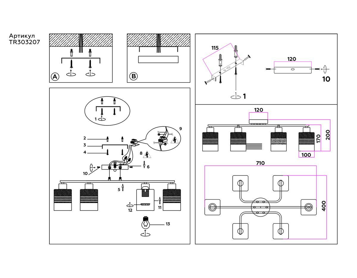 - Место установки: на потолок