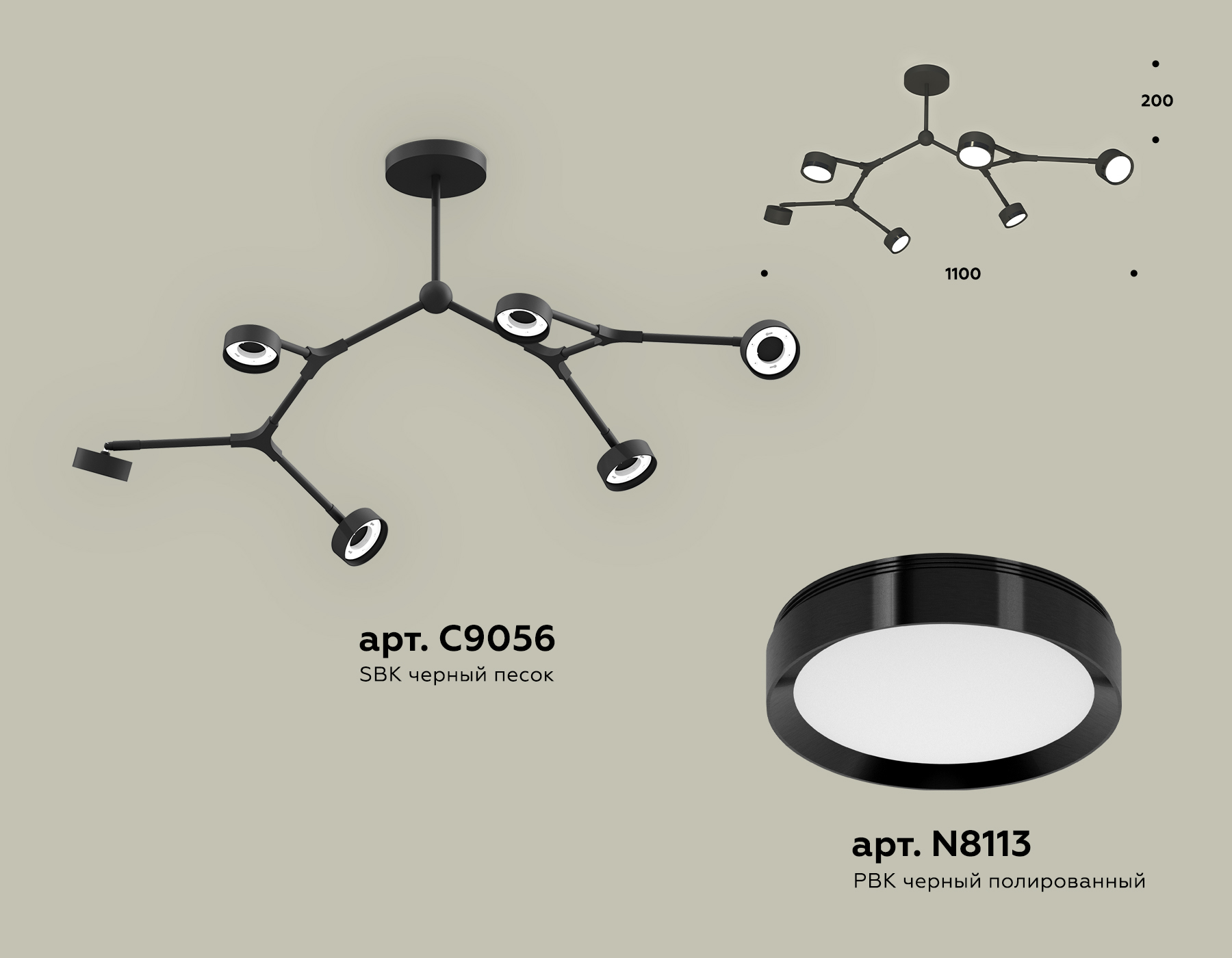 - Цвет плафонов: Черный