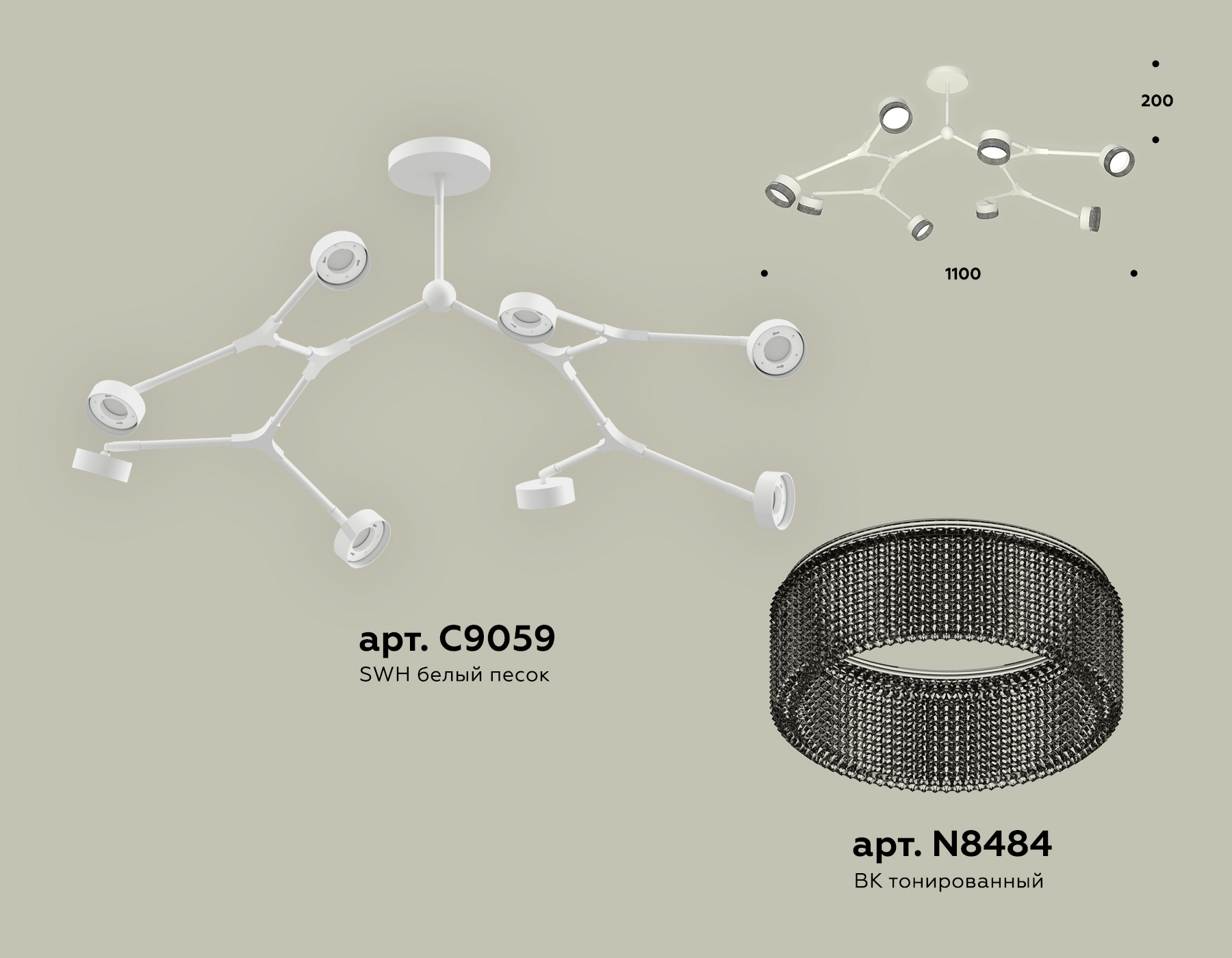 - Цвет плафонов: Дымчатый