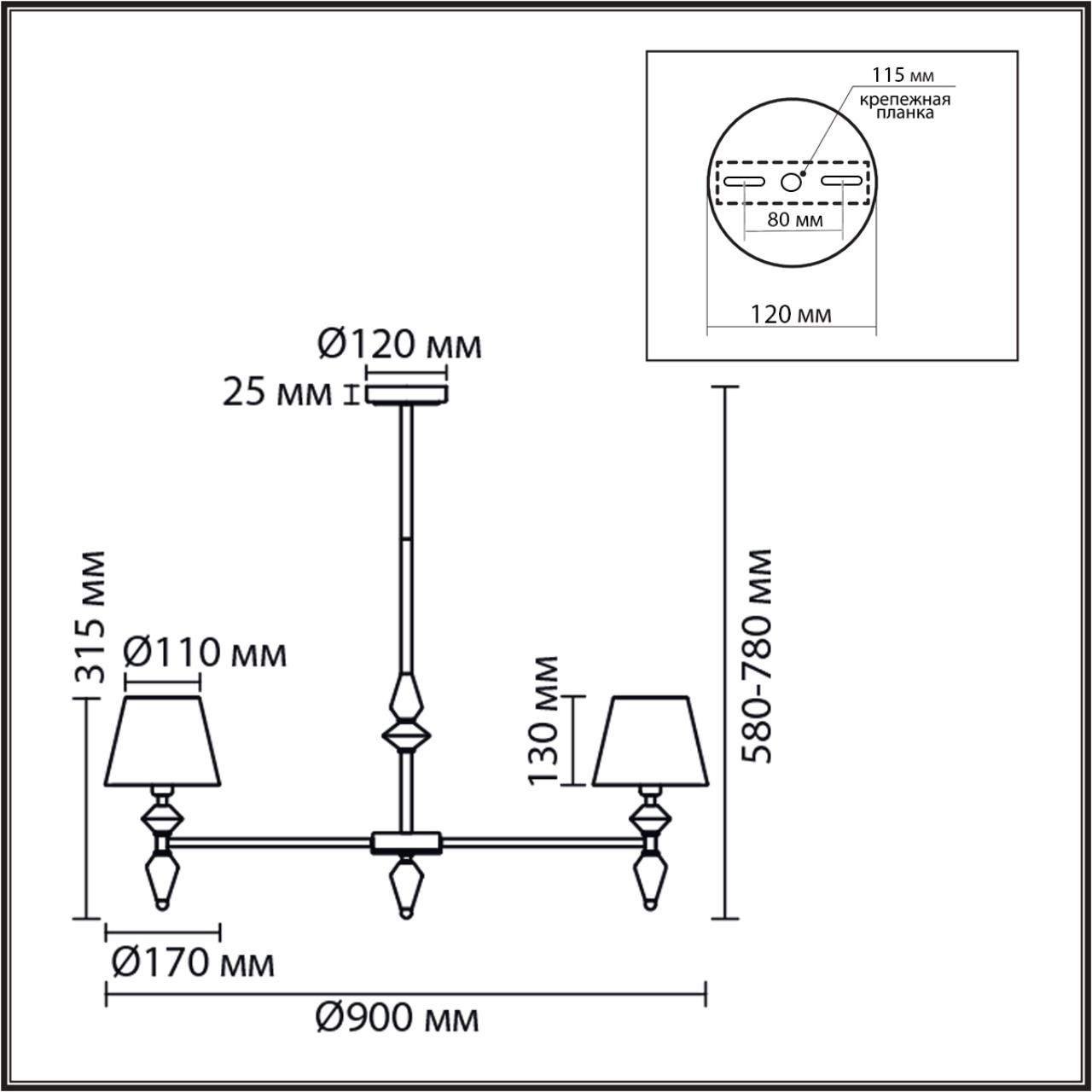 - Направление плафонов: Плафон вверх