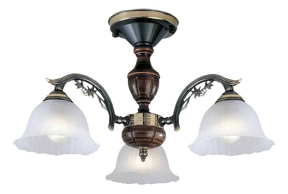 Потолочная люстра Reccagni Angelo PL 2700/3 Итальянского производсва – отличный выбор для Вас. Этот светильник Классического стиля хорошо подойдет Для спальни и придаст помещению мягкий и приятный свет. Плафоны белые из стекла. Арматура бронза из металла. Кол-во ламп - 3шт. Общая мощность 180W