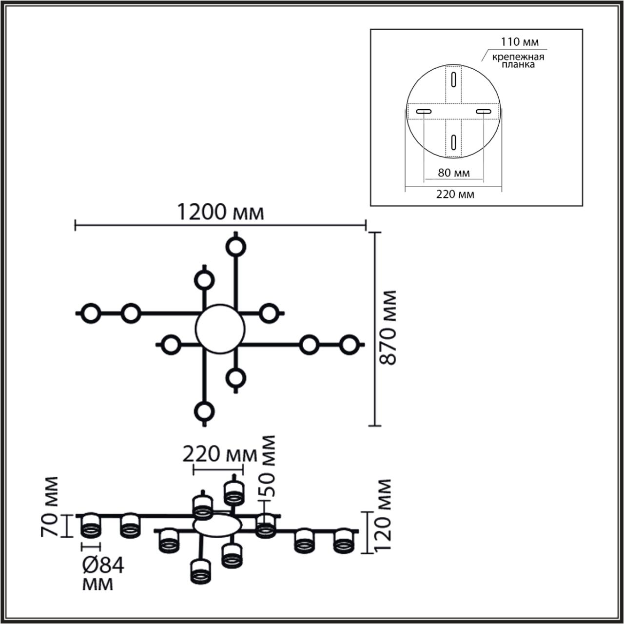 - Цвет плафонов: Черный
