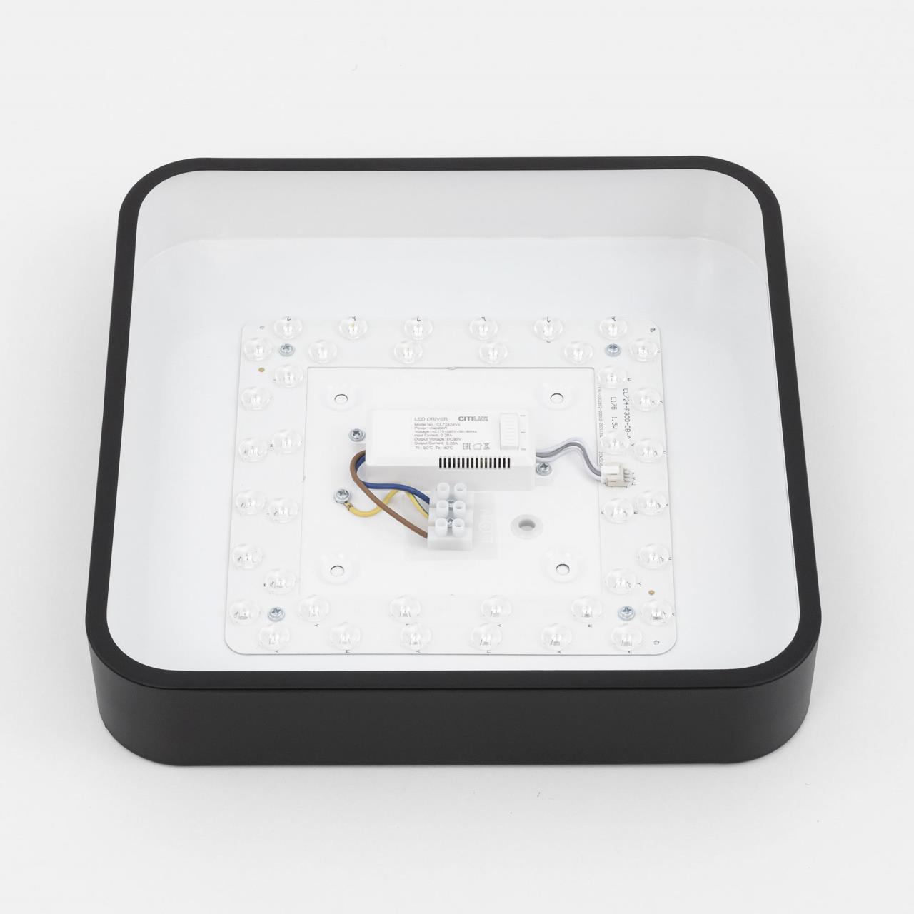 Потолочный светодиодный светильник CL724K24V1 от производителя Citilux относится к коллекции Купер в современном стиле минимализм. Корпус металлический, квадратной формы, цвет чёрный матовый. Рассеиватель из оптического полимера. Светильник оснащен встроенным 3-х ступенчатым диммером 100-40-15% яркости, управляется настенным выключателем. Переключатель цветовой температуры, расположенный на блоке питания, позволяет при монтаже установить режим - 3000-4000-5500К (тёплый, нейтральный или холодный свет). Мощность 24Вт, световой поток 1900Лм, индекс цветопередачи больше 80 CRI. Свет без мерцаний и пульсаций, что обеспечит защиту здоровья ваших глаз. Подходит для всех типов потолков, в том числе натяжных. Тип крепления – через основание , страна бренда Дания . Купить модель CL724K24V1 спешите в интернет магазине 220svet.ru