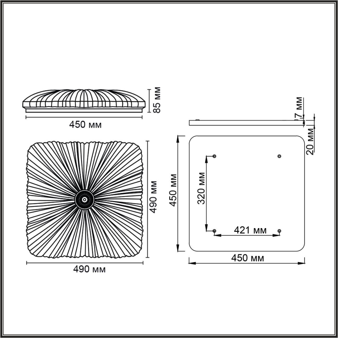 - Форма плафона: Квадратный