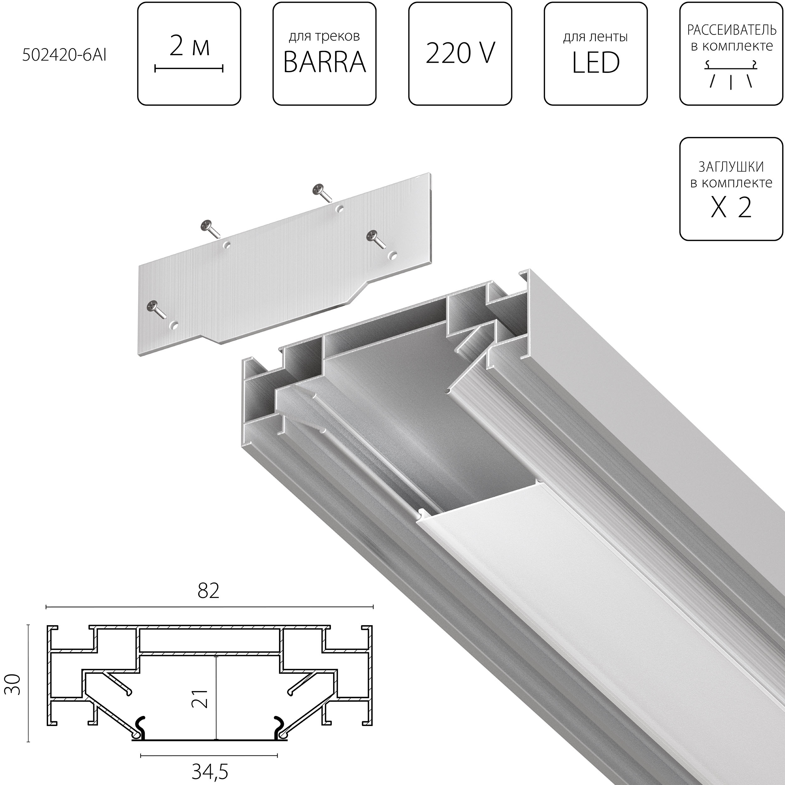 Профиль встраиваемый в натяжной потолок под LED ленту Lightstar Barra Base 502420-6AI в Кирове