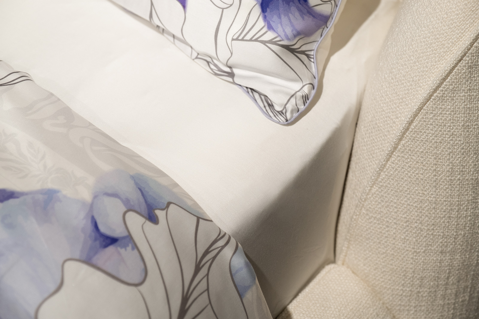 Простыня сшита из 100% ткани тенсель. Ткань изготовлена из экологически чистого волокна лиоцелл, полученного из древесины эвкалипта. Ткань мягкая, немного блестящая, как шелк, но при этом – не скользкая и легкая, как хлопок. Она отлично пропускает воздух и впитывает влагу, гипоаллергенна.