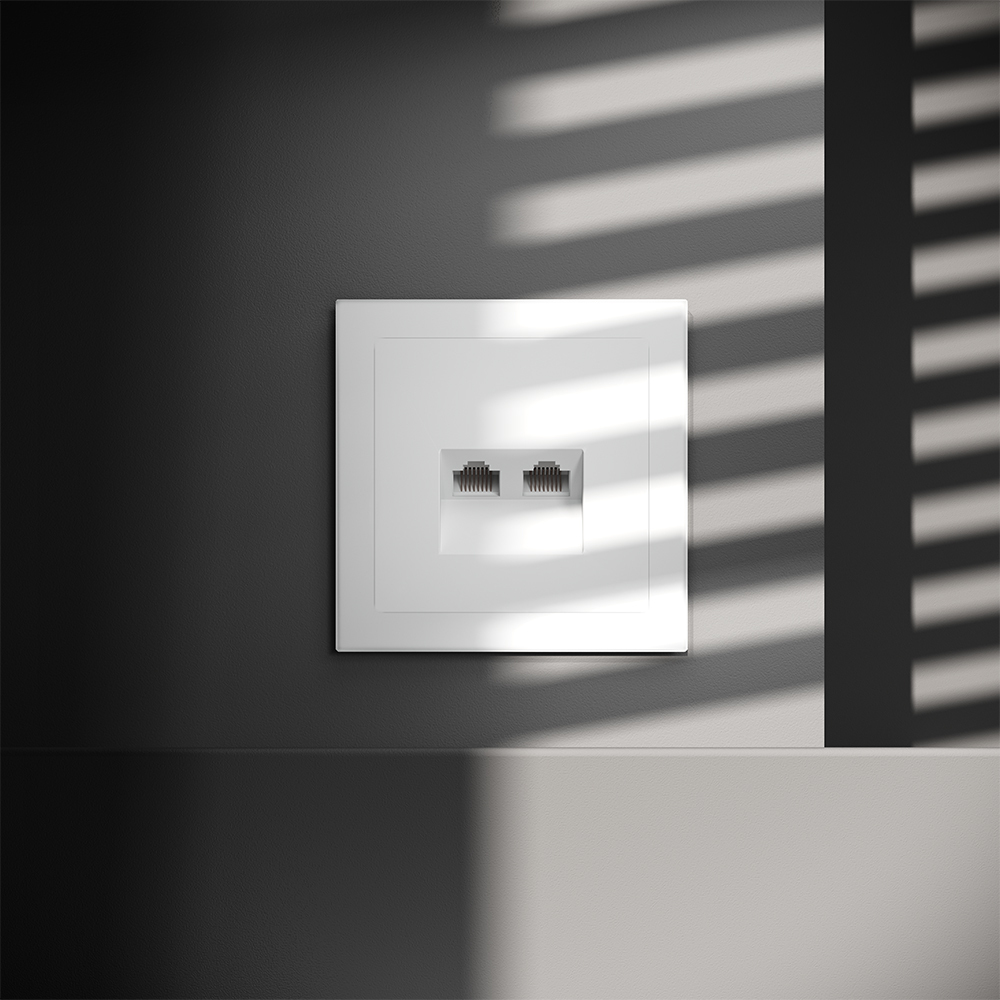 Купить "Розетка компьютерная встраиваемая двойная RJ45+RJ45 кат.6 Voltum S70 VLS060202 (белый матовый)"
