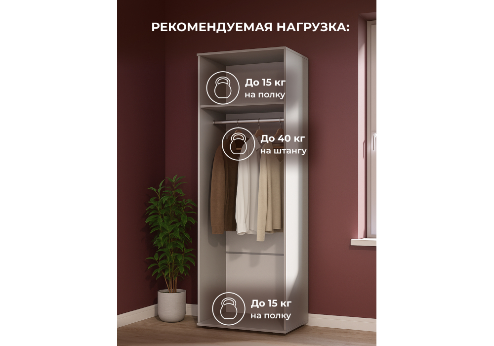 Материал каркаса - ЛДСП; Ширина - 66,4; Глубина - 48,4; Высота - 186,2;