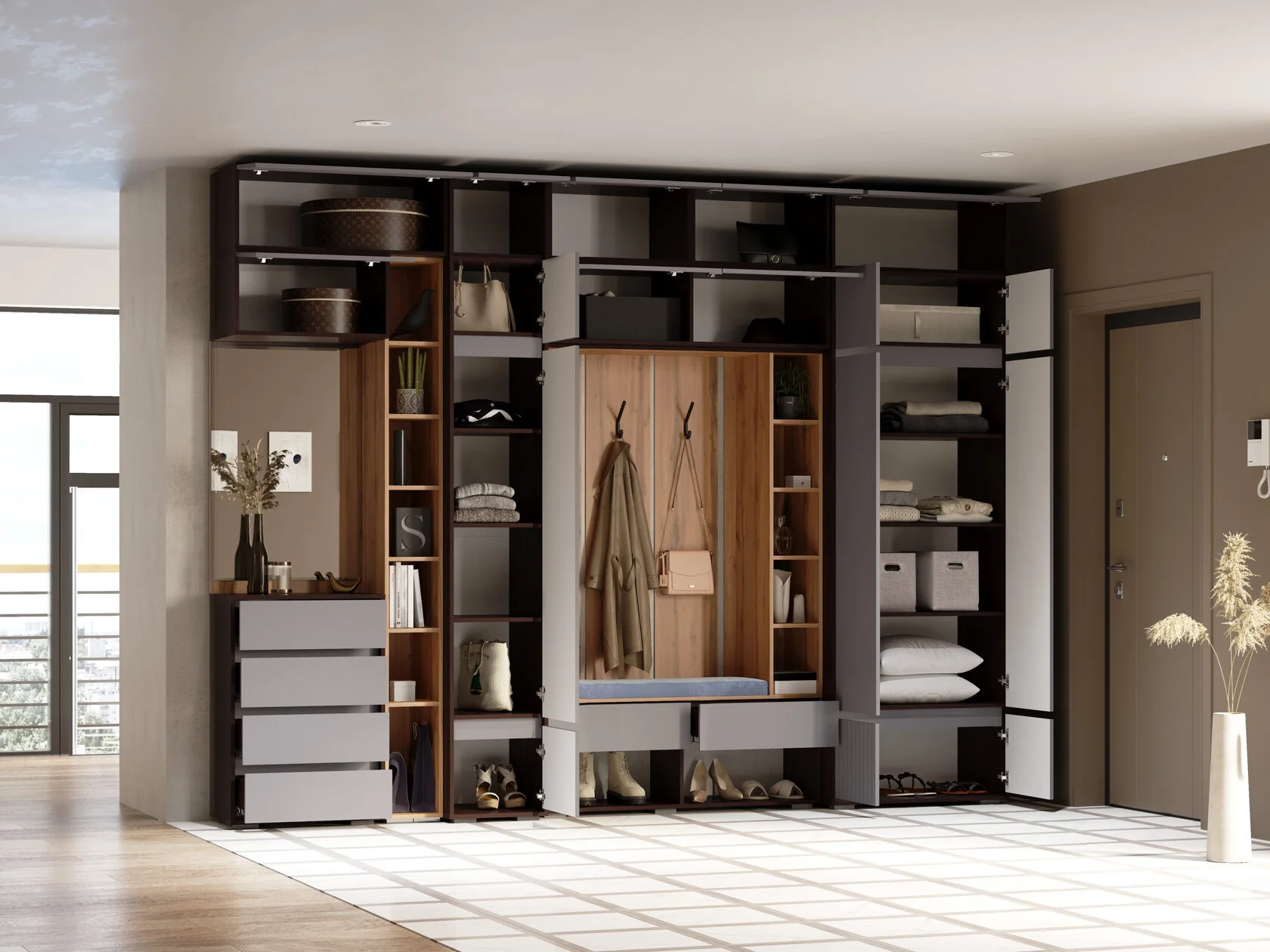 Шкаф двухстворчатый Woodville Роут венге / графит софт 593729 в Кирове