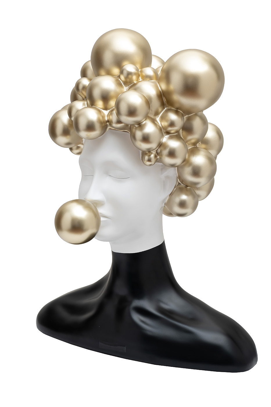 Оригинальная статуэтка в черно-золотом исполнении станет стильным акцентом в вашей обстановке. Эффектное сочетание белоснежного лица и золотых шаров создает атмосферу роскоши и современного искусства. Эта золотая статуэтка идеально дополнит современные ин...