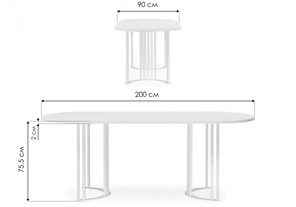 Материал каркаса - металл; Материал столешницы - ЛДСП; Ширина - 90; Высота - 75,5; Длина - 200;
