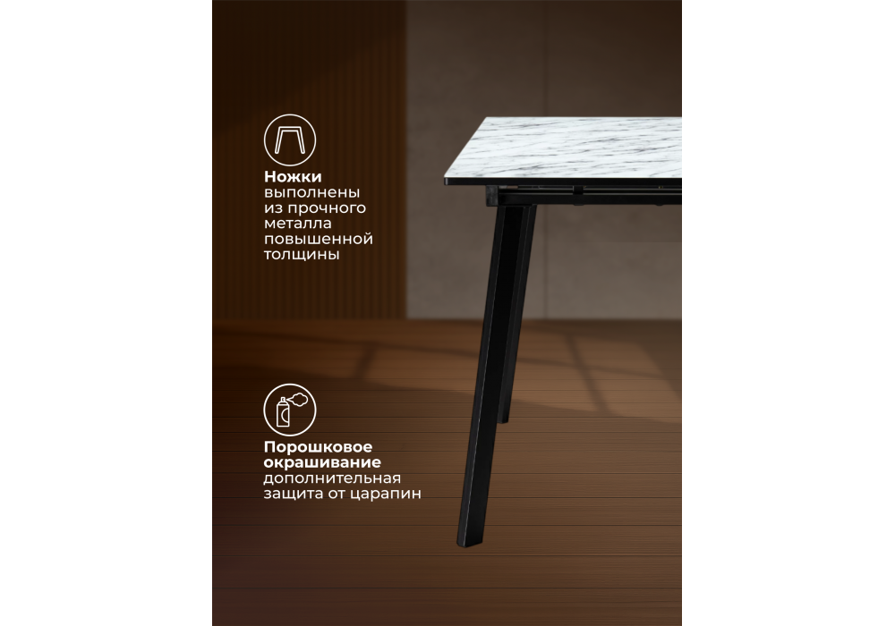 Купить "Стол стеклянный раскладной 110(140)х68х76 Woodville Агни мрамор белый / черный матовый 528558"