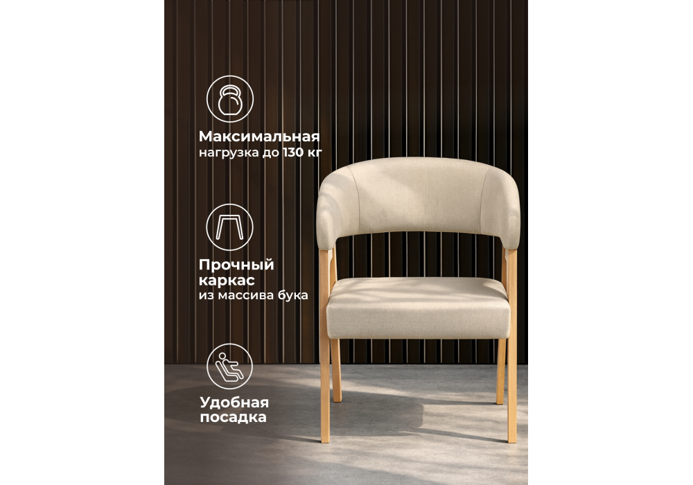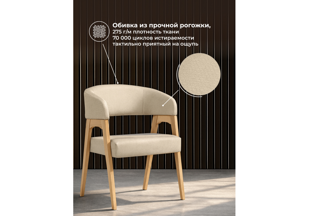 Материал каркаса - массив дерева; Материал сиденья - ткань; Материал обивки - ткань; Ширина - 53; Глубина - 56; Высота - 76; Ширина сиденья - 48; Глубина сиденья - 48; Высота сиденья - 46;