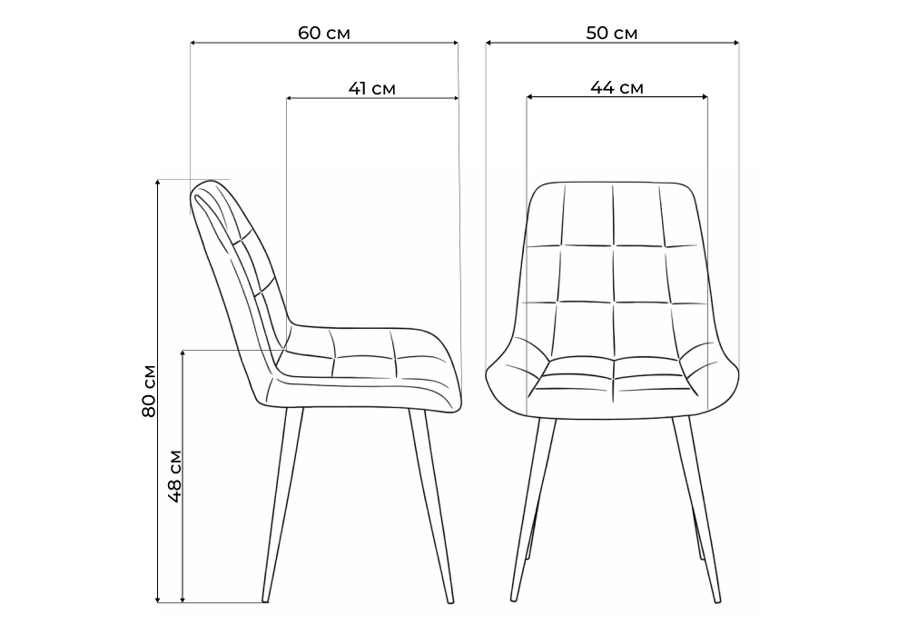 Материал каркаса - металл; Материал сиденья - велюр; Материал обивки - велюр; Цвет ножек - серый; Ширина - 50; Глубина - 60; Высота - 80; Ширина сиденья - 44; Глубина сиденья - 41; Высота сиденья - 48;