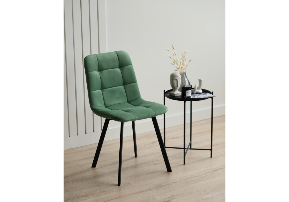 Материал каркаса - металл; Материал сиденья - велюр; Материал обивки - велюр; Цвет ножек - черный; Ширина - 43,5; Глубина - 50; Высота - 87,5; Ширина сиденья - 40; Глубина сиденья - 37,5; Высота сиденья - 49;