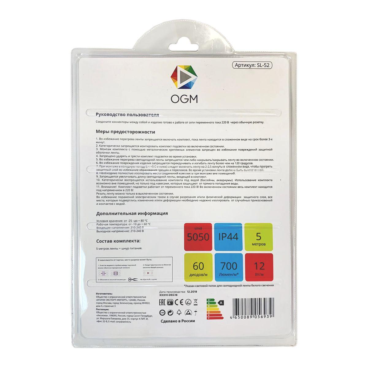 Светодиодная влагозащищенная лента OGM 12W/m 60LED/m 5050SMD разноцветная 5M SL-52 в Кирове