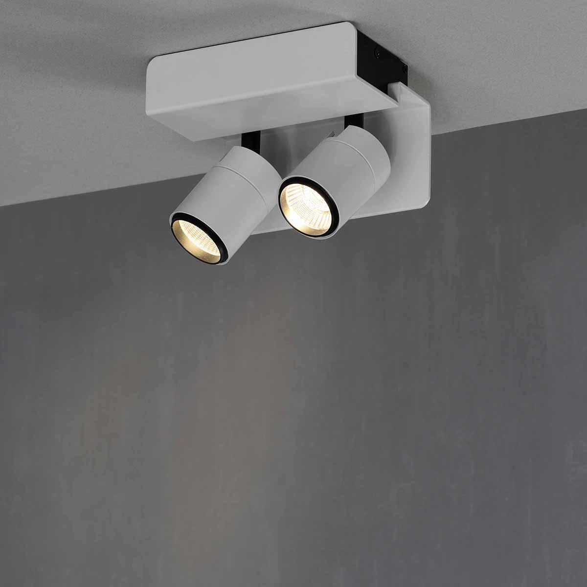 Спот белого цвета. Модель 5720, из коллекции Boracay от испанского производителя Mantra. Светильник состоит из 2 плафонов, форма которых цилиндр, и выполнены они из металла,  материал арматуры - Алюминий.  Производитель рекомендует приобретать для светильника лампочки Светодиодные (LED) с цоколем LED мощностью 7W.