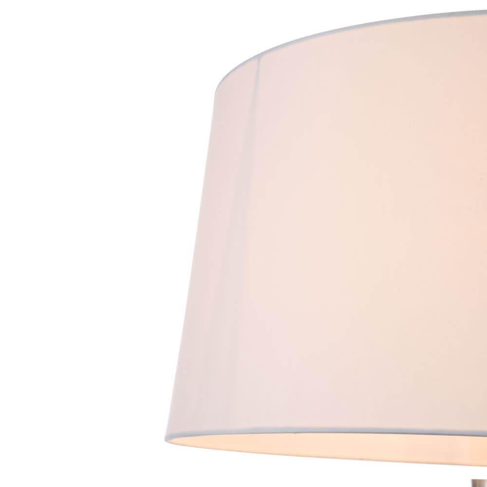 Превосходная модель белого цвета выполнена из металла. Плафон - конусный, выполнен из ткани. Стиль торшера - современный,  его можно использовать для гостиной,  создаст уютную атмосферу, может служить, как для декоративного освещения, так и для функционального освещения места для чтения книги, например.