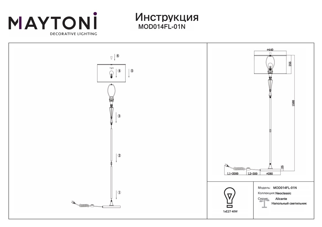 Торшер Maytoni Alicante MOD014FL-01N — это надёжный и долговечный осветительный прибор, который станет прекрасным дополнением вашего дома и будет радовать вас своим стильным дизайном и функциональностью на протяжении многих лет.