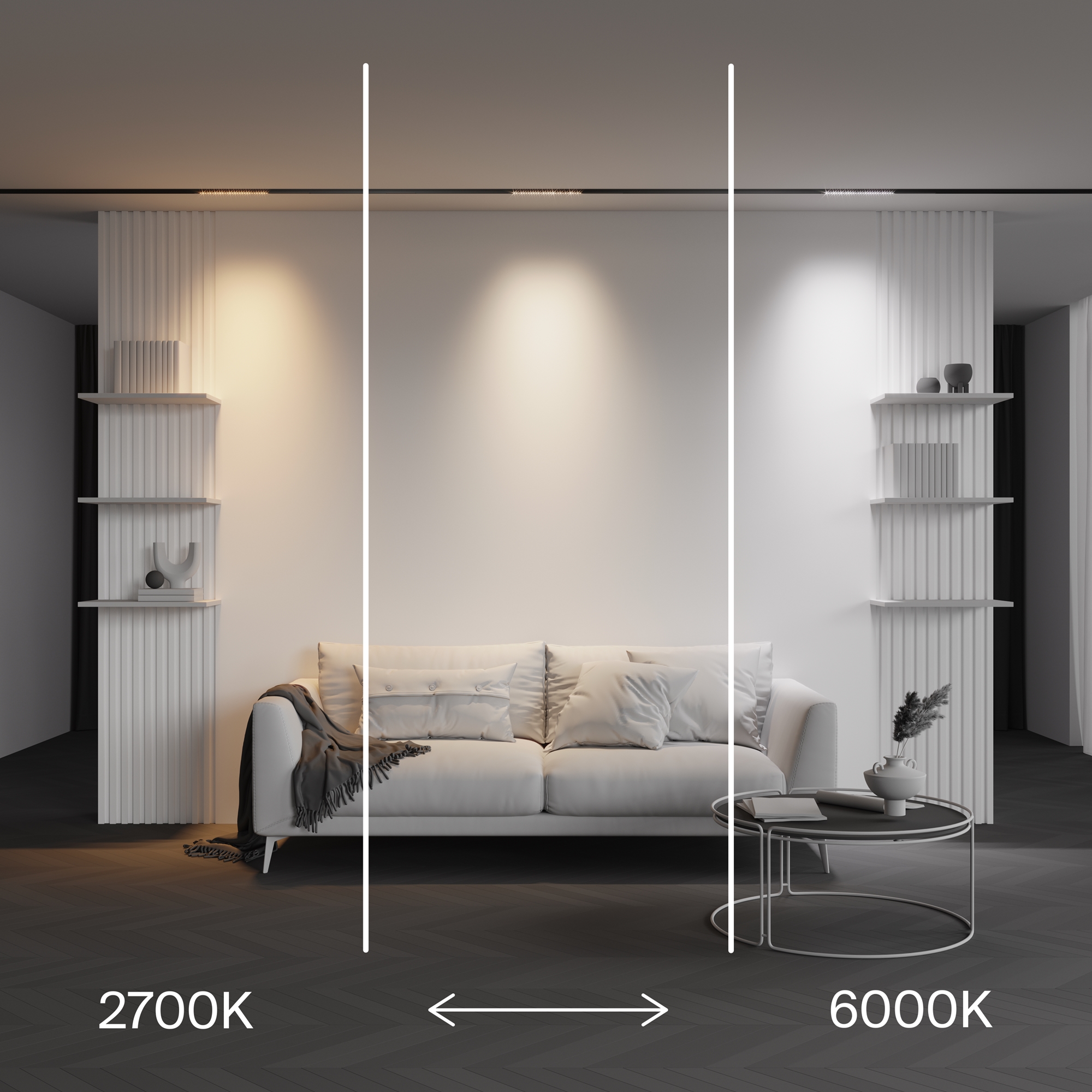 2700-6000K?Цветовая температура – это характеристика интенсивности излучения источника света. Ниже пример как меняется тип света в зависимости от цветовой температуры.