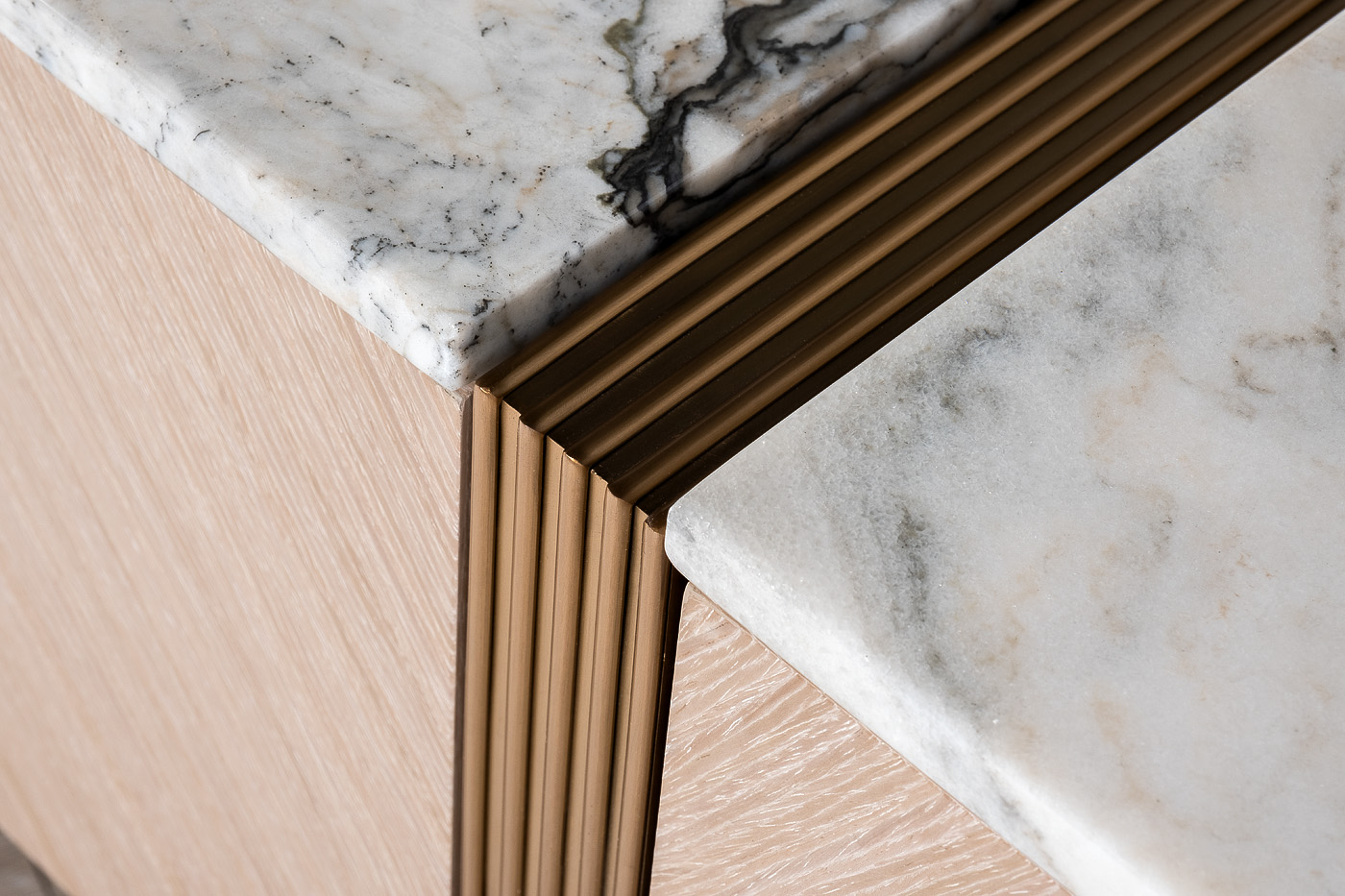 Длинная тумба под телевизор – универсальное решение для современной гостиной или спальни. Данная мебель позволяет организовать функциональную ТВ-зону и удобное хранение домашних вещей. Мраморная столешница тумбы прекрасно справляется с функцией подставки под телевизор и декор. Благодаря светлому оттенку шпона стильная тумба под ТВ прекрасно комбинируется с современной мебелью.