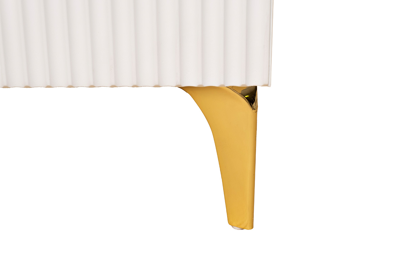 Оригинальный внешний вид, современные мебельные тренды, практичность и благородный внешний вид — все это сочетает в себе дизайнерская тумбочка DORIA в белом цветовом оформлении. Роскошности изделию придают ножки и ручки из металла оттенка золота. Стильная прикроватная тумбочка для спальни выполнена из высококачественных материалов. Белая прикроватная тумбочка эффектно дополнит помещение, выполненное в современном стиле.