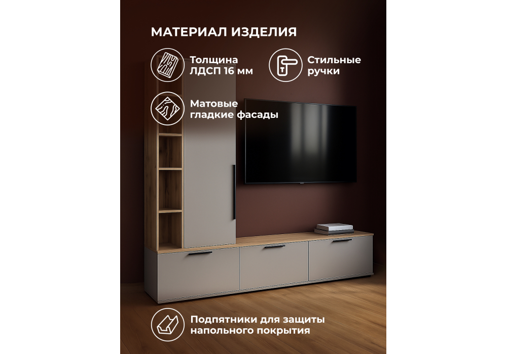 Купить "ТВ-тумба Woodville Филеста шиншилла серая / дуб вотан 664896"