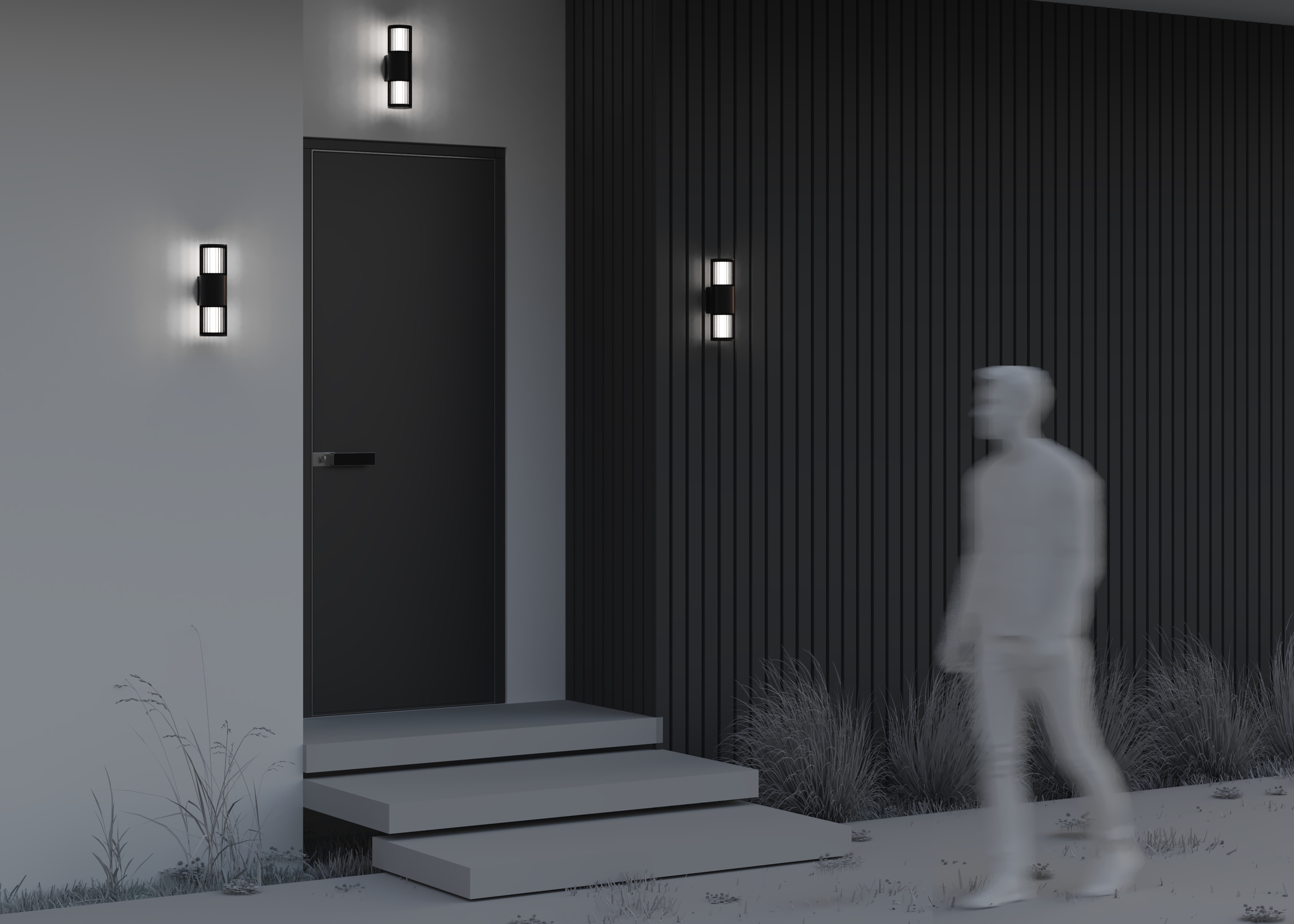 Материал арматуры - алюминий, цвет - графит. Источник света - лампа с цоколем Е27. Повышенная степень защиты от пыли и влаги IP65 у ландшафтной модели и IP54 у настенных светильников. Стильное обрамление рассеивателя решеткой из алюминия.