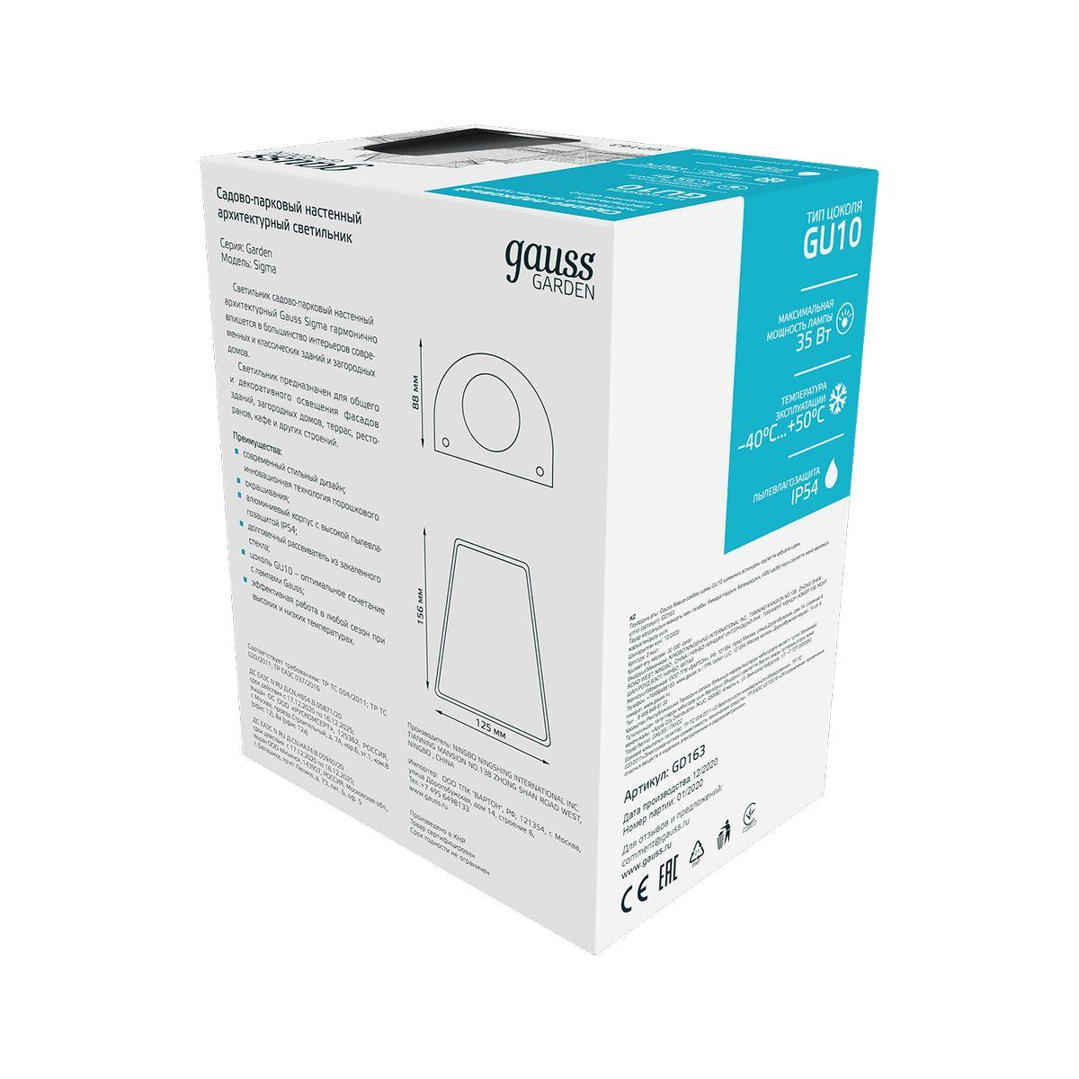 Уличный настенный светильник Gauss Sigma GD163 в Кирове