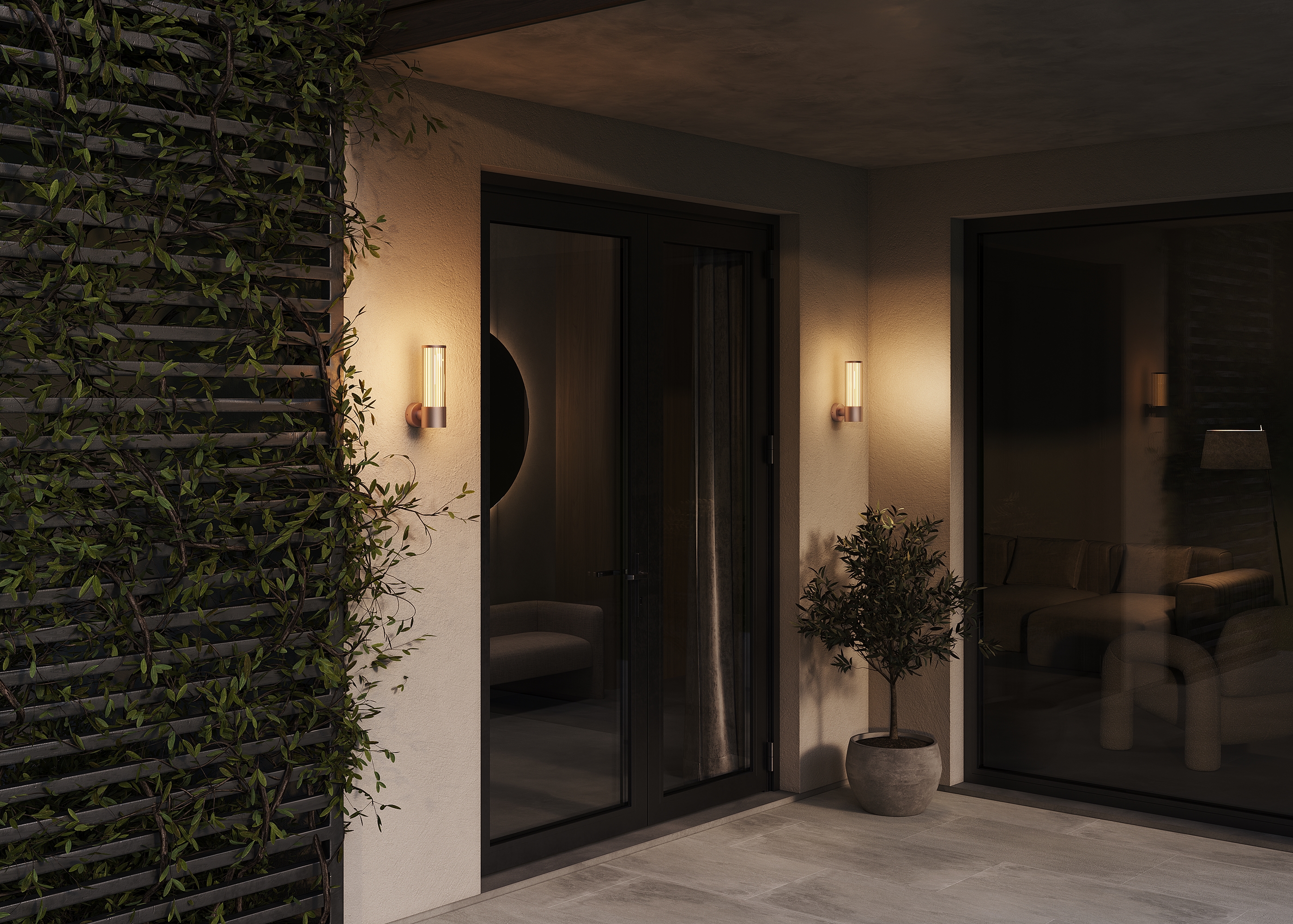 Корпус - алюминий, цвета - графит, коричневый. Двойной плафон из стекла. Внешний - прозрачный с линейным рельефным рисунком. Внутренний - белый глянцевый рассеиватель. Модели мощностью от 12Вт до 20Вт - предназначены для основного освещения. LED-источник света, цветовая температура - 3000К. Высокая степень защиты - IP65.