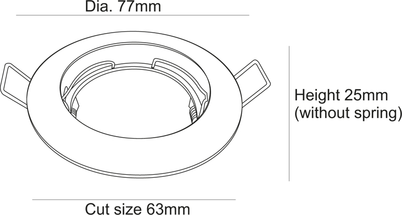 - Диаметр врезного отверстия: 63 мм (6.3 см)