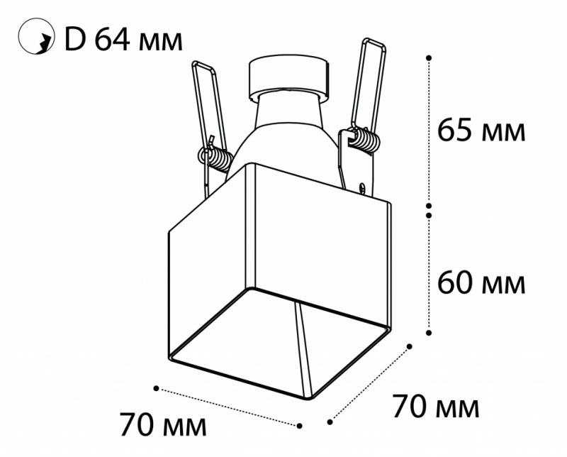- Диаметр врезного отверстия: 64 мм (6.4 см)